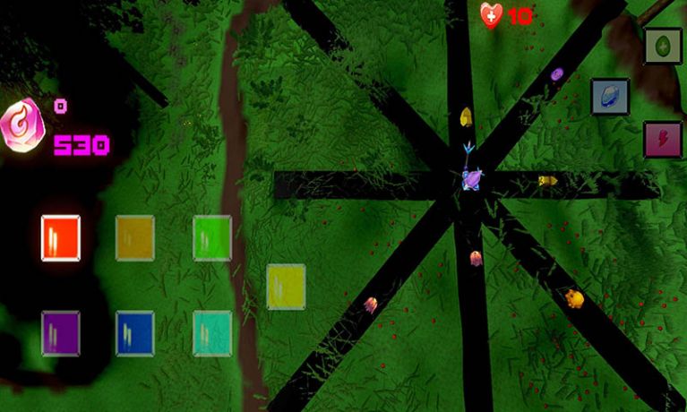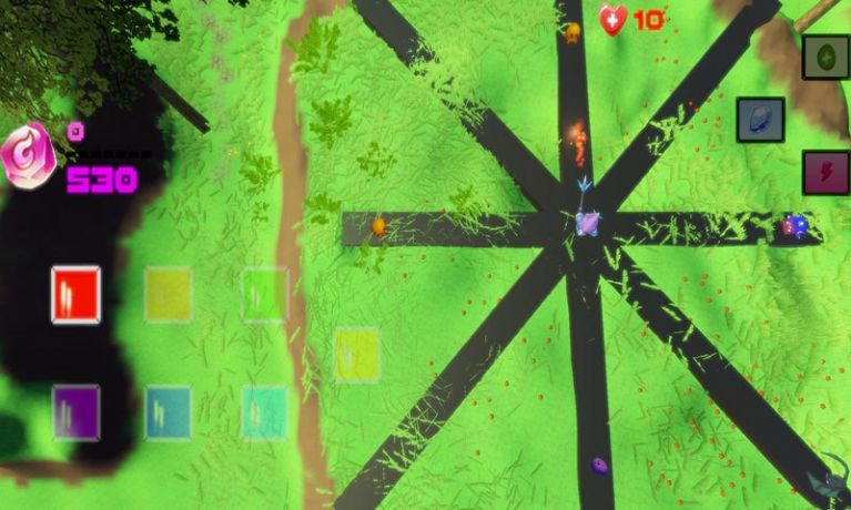 这是一款休闲塔防类游戏,选择颜色消灭对应的怪物获得魔能。 如果怪物来势太凶顶不住时,那就使用能量释放右上角的技能吧! 点击黑色道路可转向指定方位哦!