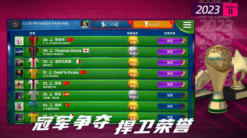 风靡全球的正版足球经理手游,《梦幻足球世界》是一款沉浸式足球经理模拟游戏,在游戏中你可以带领最喜爱的球队捧起冠军奖杯。 作为足球经理,你可以从升级球员数值、更新俱乐部设施、管理转会、选择球队及设定球队战术等各个方面掌控俱乐部实况。带领他们在球场上取得胜利,获得荣誉,感受成为一名顶级足球经理人的兴奋。