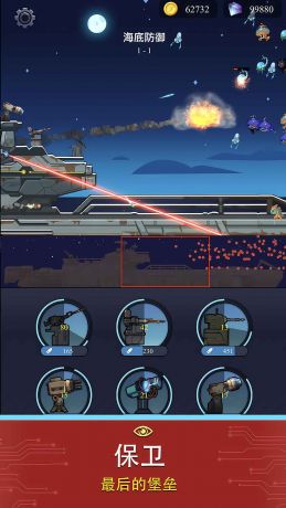 各种变异的海洋怪物袭来,你需要建造和升级你的防御设施防御怪物的袭击,同时还有生产和升级你的子弹,因为弹药有可能随时不足。