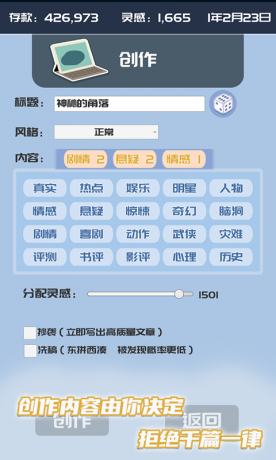你将成为一名新媒体人 通过不同的内容搭配与灵感分配来创作出热门文章 随着趋势变化同一内容搭配将有不同效果