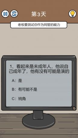 《爆笑打工日记》是一款聚焦普通打工人的爆笑解谜游戏。游戏基于现代普通打工人的日常生活,巧妙的将生活事件设计为搞笑无厘头的关卡,将普通人的日常浓缩在游戏中,以娱乐、趣味的方式展现当代打工人热爱生活、好好工作的生活态度。