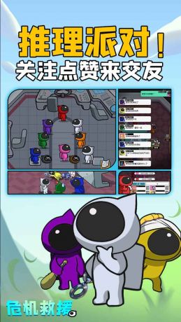 《危机救援》是一款快节奏,充满乐趣的社交推理游戏。船员们需要在发生危机的飞船上进行抢修任务,发挥自己的聪明才智找到潜藏飞船的内鬼。卡通形象太空人萌趣可爱,百变搭配风格迥异服饰。竖屏操作,简易上手,在碎片时间里随时随地来一局,在闲暇之余收获到推理的快乐。